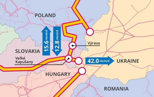 Polish natural gas transportation links with Ukraine and Slovakia (in 2022)[7] (Source: GTSOU)